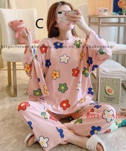 【商品説明】:パジャマルームウェアレディース春秋長袖パジャマ綿ルームウェアレインボー色花大きいサイズ上下セット可愛いパジャマ女性部屋着寝巻き6色
