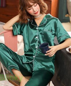 カラーバリエーション豊富な上下セットのサテンパジャマ!