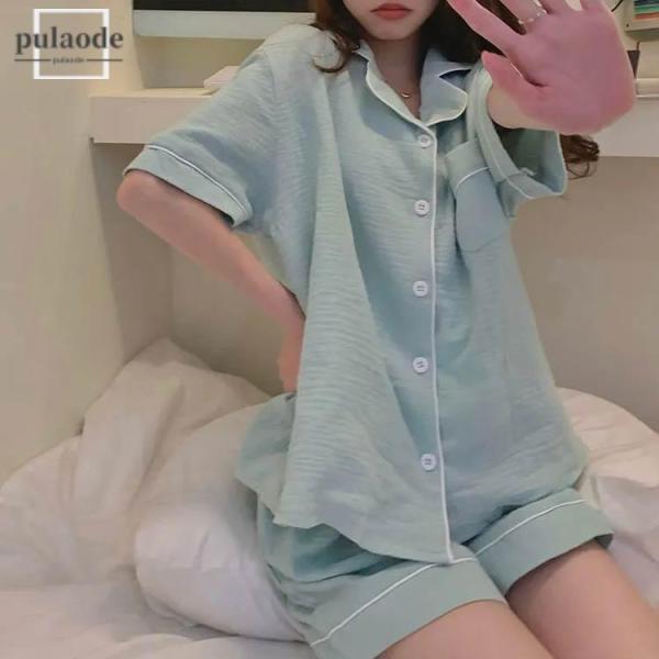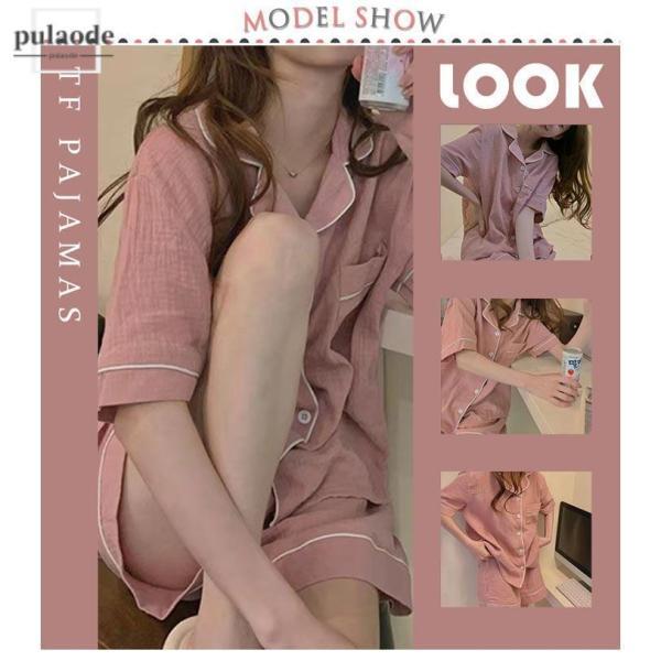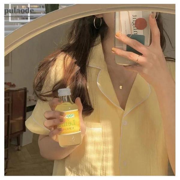 パジャマ レディース 夏用 夏 肌に優しい綿 コットン 涼しい おしゃれ シンプル 部屋着 前開き 上下セット 半袖 寝間着 ねまき