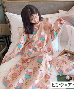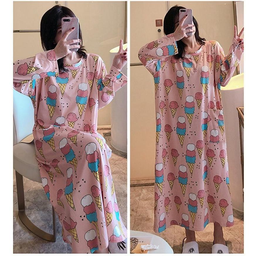 ルームウェア ワンピース 長袖 レディース 部屋着 寝間着 ロング丈 ミモレ丈 プルオーバー ラウンドネック パジャマ 大きいサイズあり ナイトウェア